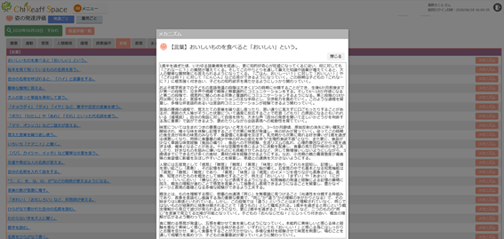 もう一つ、独自の機能である辞書機能も好評です。辞書には発達記録に記載する項目について、その行為ができたことの意味や発達段階ごとの特徴などがまとめられています。一例を挙げると、「おいしいものを食べると『おいしい』と言う」ための言語発達や好奇心の発達にはどういった段階があるか、などを解説しています。こうした辞書は書籍でももちろんありますが、多忙な業務をしながらいちいち分厚い辞書を引っ張り出して発達について調べるのは大変です。ChiReaff Spaceですと、気になる項目をクリックするだけで内容を参照することが可能になります。この辞書機能を活用すれば、保育士としての経験年数に関わらず保育に関する知識を効率よく取得し、自信を持って保育に取り組んでいただけることもメリットの一つと考えております。