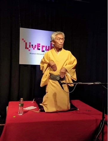 現在までに240回以上の高座、100題超の噺を披露。英語落語や、新郎新婦の馴れ初めを語る「なれそめ落語」、故人をしのぶ「想い出落語」など創作にも取り組む。とくに、経営者からのヒアリングをもとに創業物語や企業の歴史を伝える「落語 DE 社史」は豊富なビジネス経験を活かしたオリジナル落語と評判を呼び、日本経済新聞でも紹介された(2021/1/12文化欄)。
