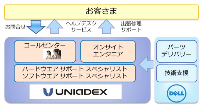 ユニアデックスによるデル製品「自営保守サービス」の概要図