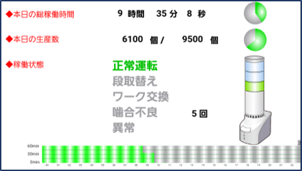 具体的には、グループ企業である株式会社ツバキE&Mの生産工程(減速機用歯車製作ラインのシェービング工程)において、これまでは現場担当者が目視などで確認していた稼働状態、異常発生などを、機器に取り付けられたPLCからのデータを椿本チエインの遠隔監視システム「MitaMon」と連携する ことで定量的に把握する仕組みを実現しました。