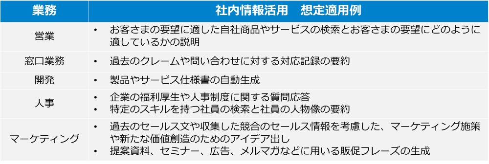 ChatGPTの活用は、試行段階から業務に適用する段階に移行していくことが予想されています。それに先立ち、セキュリティーを担保しつつ、ChatGPTを積極的に業務に活用できるように、2024年4月から、社内情報のデータ連携、その情報の管理機能などの新たな機能を追加し、提供を開始しました。